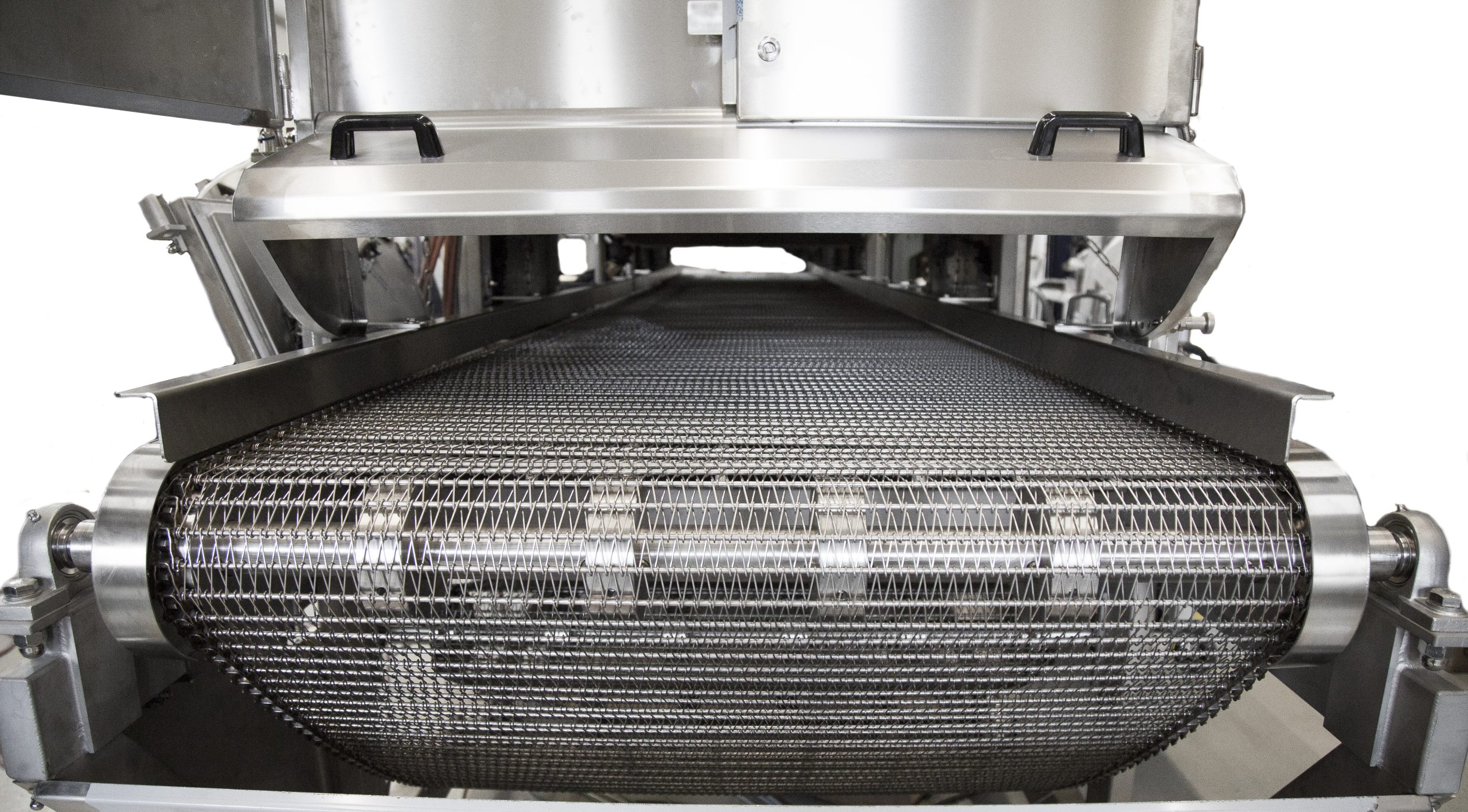 The products being cooked get a frying surface without losing weight, and the cooking itself is very fast. The speed of the PTFE-belt is adjustable, making the machine suitable for both cooking and pre-cooking. The belt is being cleaned with an inbuilt belt wash, maximizing the lifespan of the belt. The belt wash uses either hot water or steam.